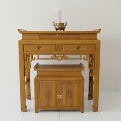 - Tủ Thờ Hiện Đại: Các mẫu tủ thờ gỗ của chúng tôi được thiết kế tích hợp tiện ích, với các ngăn kéo và khoang tủ ẩn dưới, giúp cất giữ đồ thờ cúng gọn gàng, kín đáo, duy trì sự thanh tịnh và ngăn nắp cho khu vực thờ.