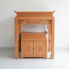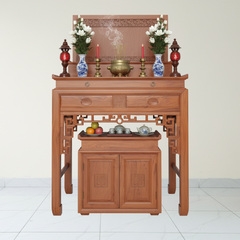 Bàn thờ được thiết kế hợp phong thủy với kích thước chuẩn lỗ ban, ý muốn mang lại nhiều điều cát lành, may mắn cho gia chủ. Sản phẩm Bàn thờ gỗ giúp tạo không gian thờ cúng trang nghiêm, tâm linh để con cháu nhớ đến bố mẹ, ông bà tổ tiên hay một lòng thành kính hướng thần, bái Phật.