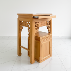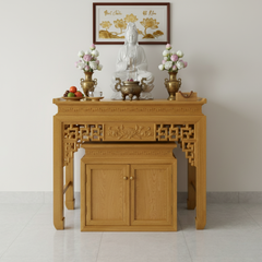 - Tủ Thờ Hiện Đại: Các mẫu tủ thờ gỗ của chúng tôi được thiết kế tích hợp tiện ích, với các ngăn kéo và khoang tủ ẩn dưới, giúp cất giữ đồ thờ cúng gọn gàng, kín đáo, duy trì sự thanh tịnh và ngăn nắp cho khu vực thờ.