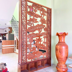 - Điểm nhấn thẩm mỹ: Vách ngăn không chỉ là vật ngăn cách, mà còn là một tác phẩm nghệ thuật. Những hoa văn chạm khắc tỉ mỉ sẽ là điểm nhấn ấn tượng, nâng tầm vẻ đẹp cho phòng khách của bạn.