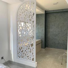 Vách ngăn CNC được làm từ nhiều chất liệu đa dạng như gỗ MDF, HDF, cao su, sồi, gõ đỏ. Nhờ công nghệ cắt CNC hiện đại, mỗi tấm vách đều có những hoa văn tinh xảo, độc đáo – từ nét cổ điển đến hiện đại, chắc chắn sẽ làm hài lòng mọi ánh nhìn.