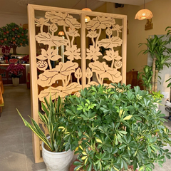 - Điểm nhấn thẩm mỹ: Vách ngăn không chỉ là vật ngăn cách, mà còn là một tác phẩm nghệ thuật. Những hoa văn chạm khắc tỉ mỉ sẽ là điểm nhấn ấn tượng, nâng tầm vẻ đẹp cho phòng khách của bạn.