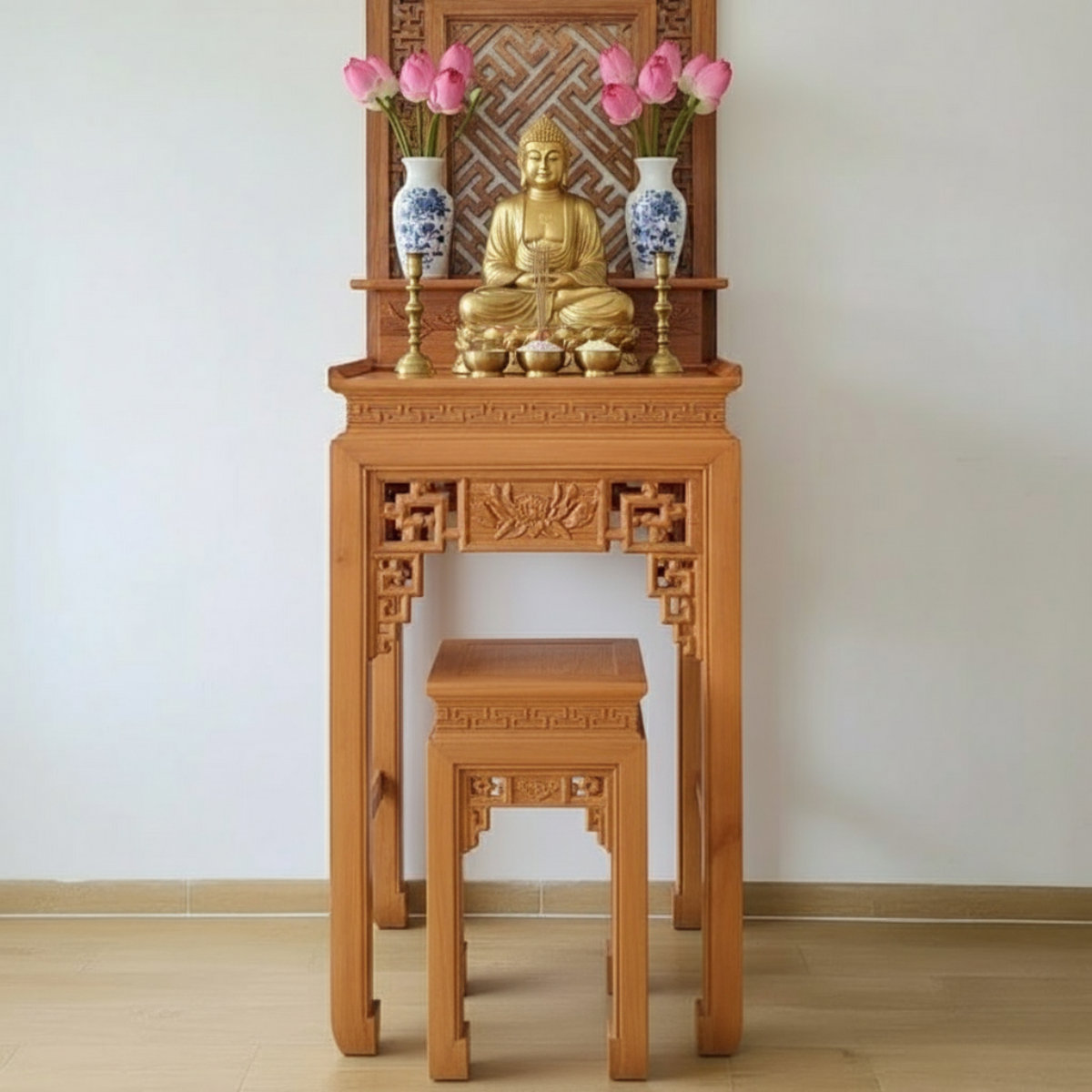 Đây là lựa chọn lý tưởng cho những gia đình mong muốn có một không gian thờ Phật ấm cúng, trang nghiêm nhưng vẫn giữ được vẻ đẹp hiện đại và tiện nghi.
