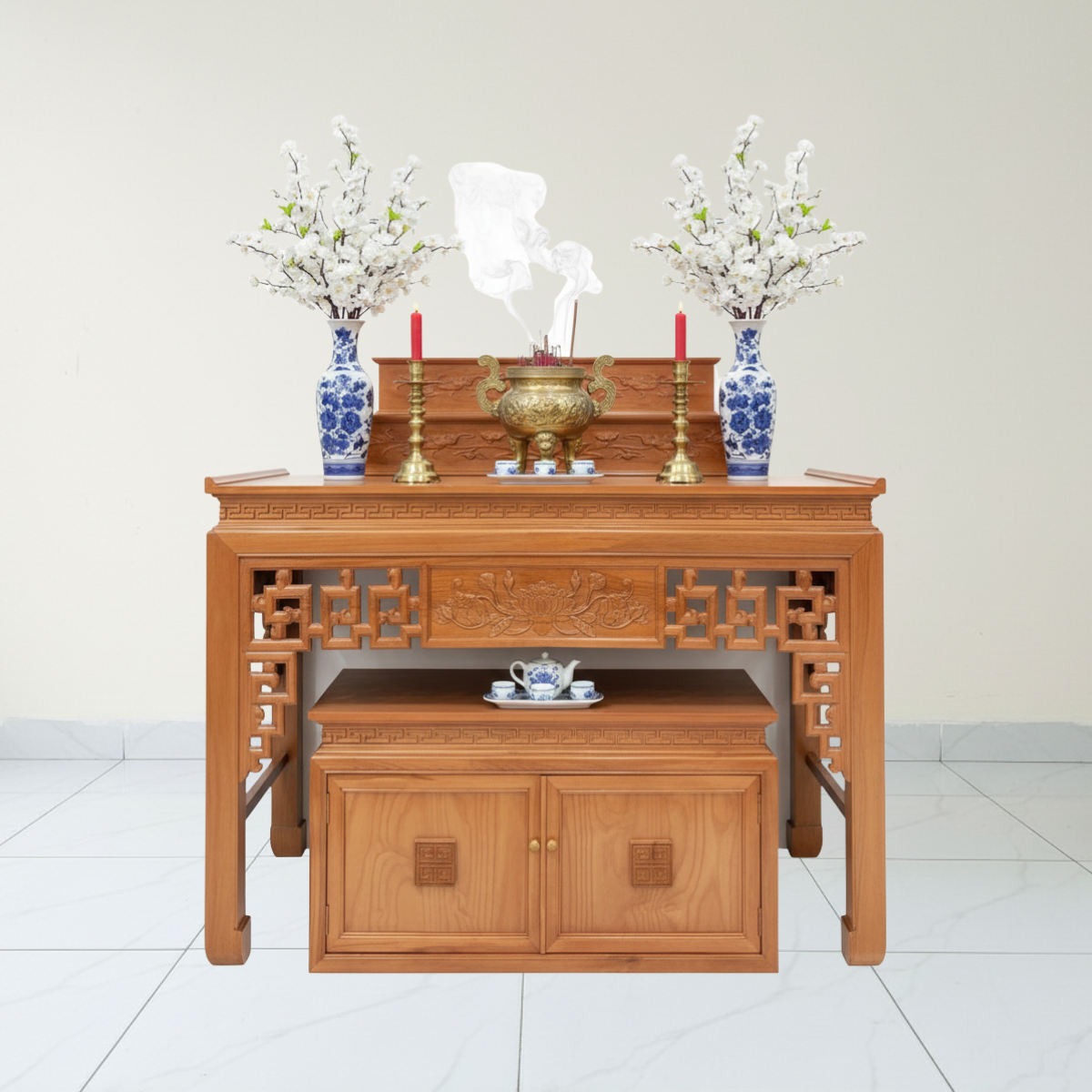 Bàn thờ gia tiên GỖ SỒI kèm đôn/ tủ