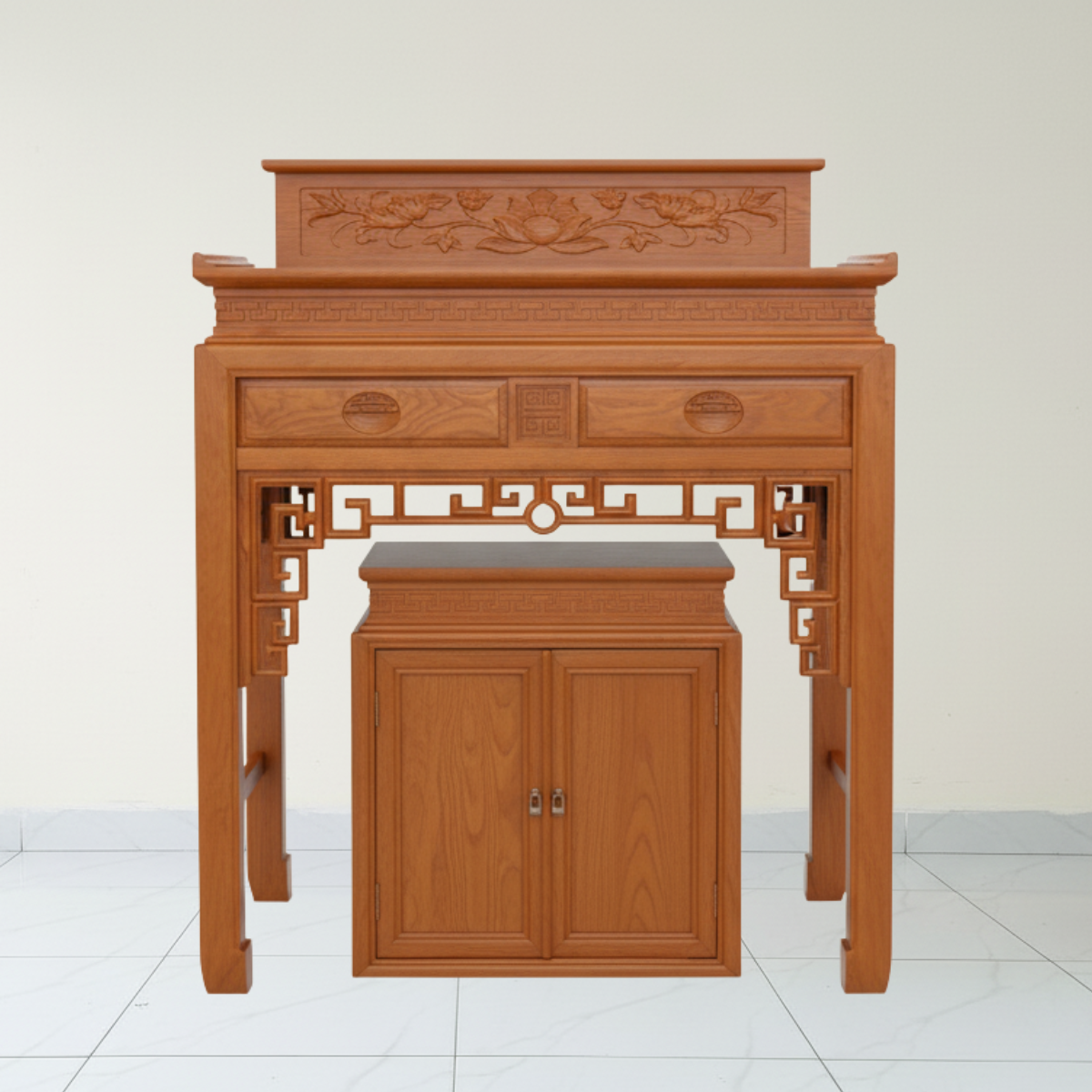Bàn thờ gia tiên GỖ SỒI kèm đôn/ tủ