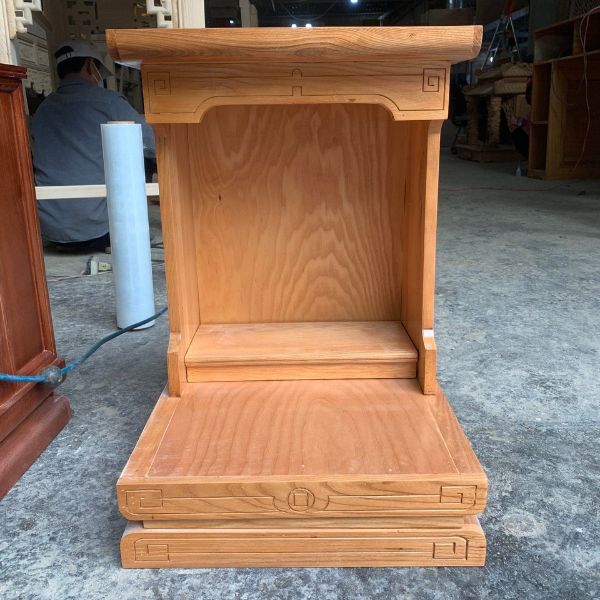 Bàn thờ có kích thước nhỏ gọn và đường cong mềm mại. Mặt bàn thờ được thiết kế phẳng và trơn nhẵn, tạo ra một không gian trang nhã và hiện đại.