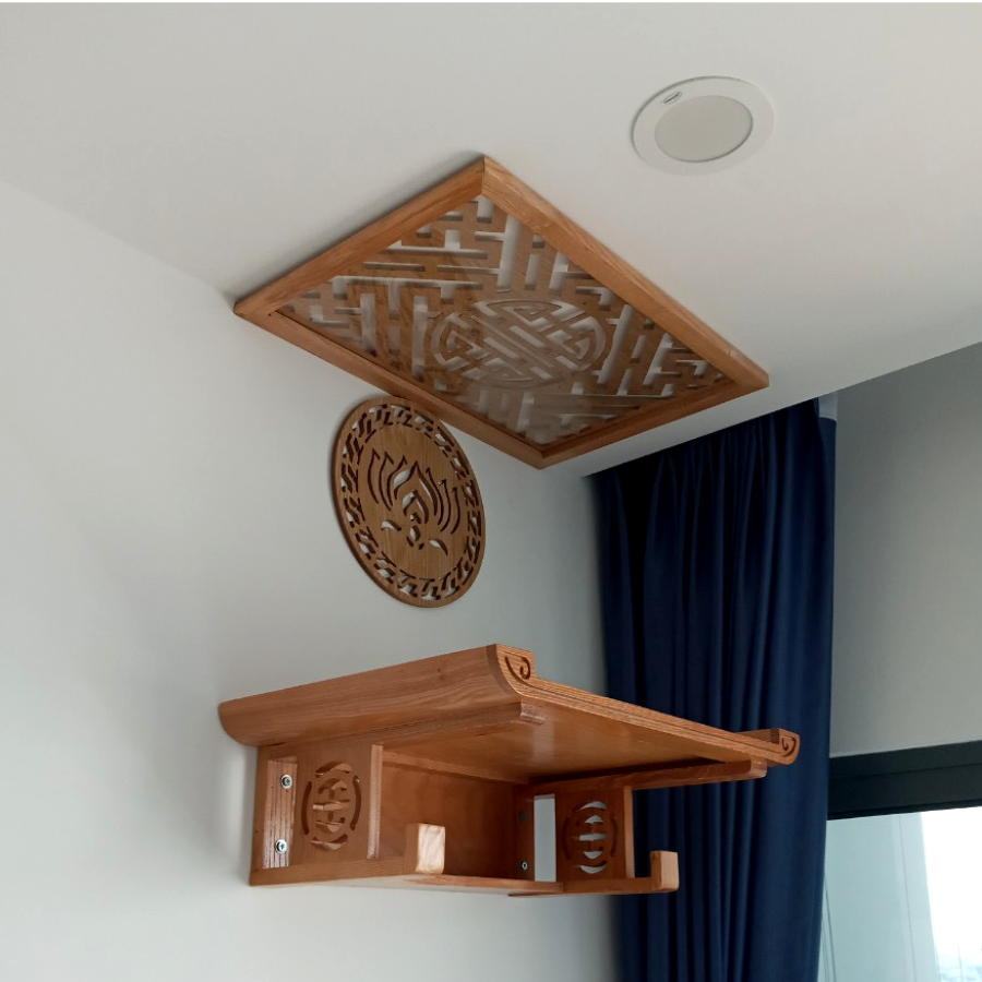 Kích thước :- Phong tục thờ cúng là nét đẹp tâm linh của người Việt Nam muôn đời nay , vì thế bàn thờ là sản phẩm không thể thiếu trong mỗi gia đình , và bàn thờ phải được đặt ở những vị trí thuận tiện theo hướng phong thủy và trang nghiêm nhất. Thiết kế của bàn thờ treo tường cũng cần phải hòa hợp với xu hướng thiết kế nội thất chung của toàn bộ căn nhà.